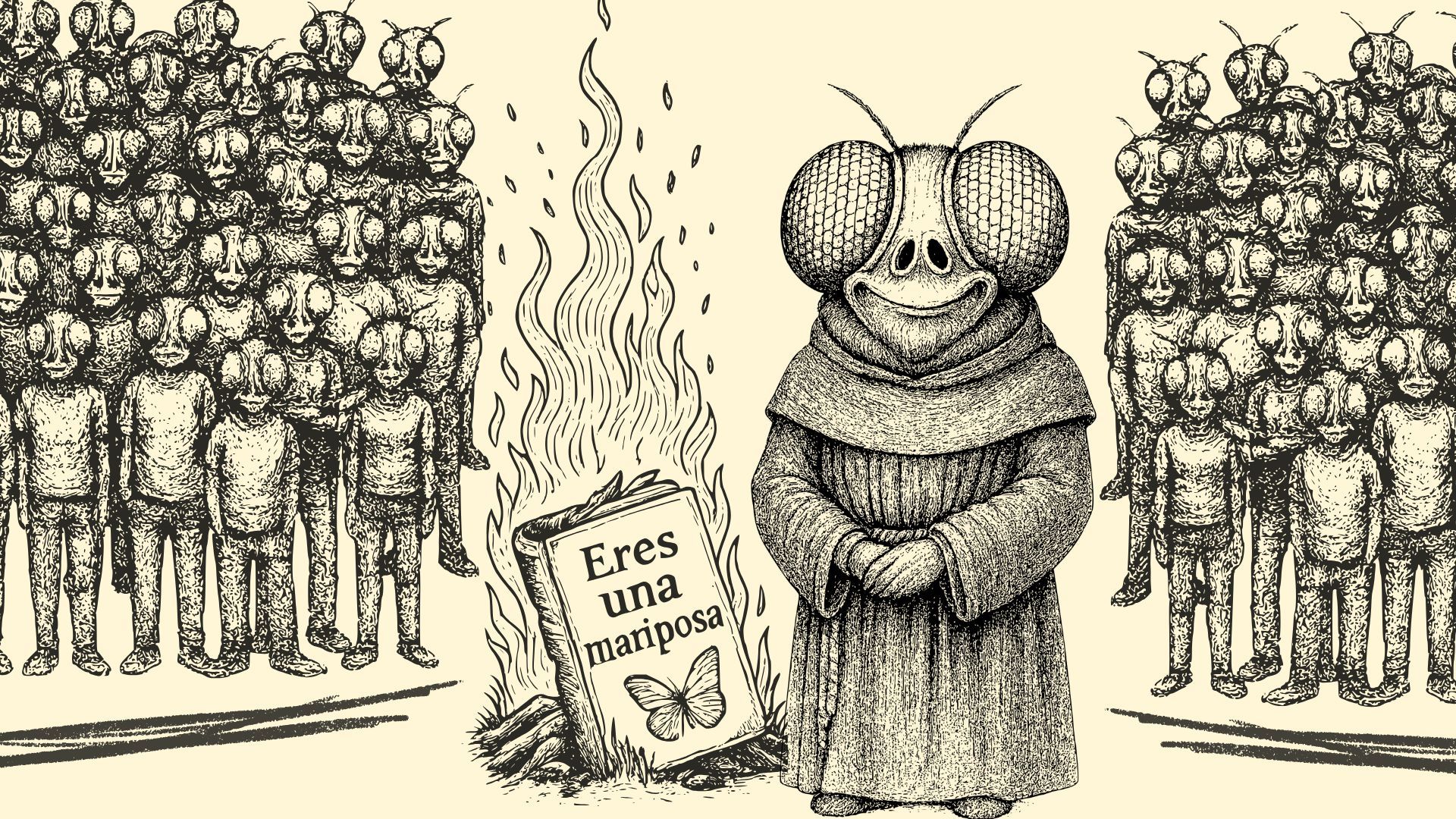 La sátira da paso a un ecosistema transmedia, con objetos, personajes y rituales, donde la figura central, Pedro Misericordioso, un fraile mosca, ostenta los cargos de Patrón de los Amargados, y Fundador de la Orden del Enjambre, que es la comunidad de seguidores de este universo que asume, y lleva con humor, su mosca interior.