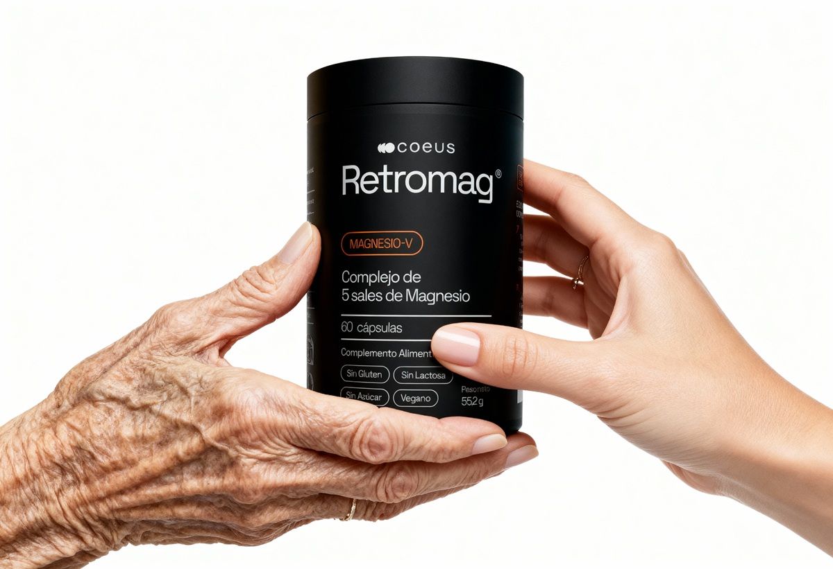 Retromag® es un complemento alimenticio en cápsulas con cinco sales de magnesio de alta biodisponibilidad: bisglicinato de magnesio, taurinato de magnesio, malato de magnesio, carbonato de magnesio y L-Ascorbato de Magnesio. Ha sido diseñado según la Teoría de la Información del Envejecimiento (popularizada por el Dr. David Sinclair) y validado mediante los relojes epigenéticos de segunda generación desarrollados por el Dr. Steve Horvath (GrimAge).